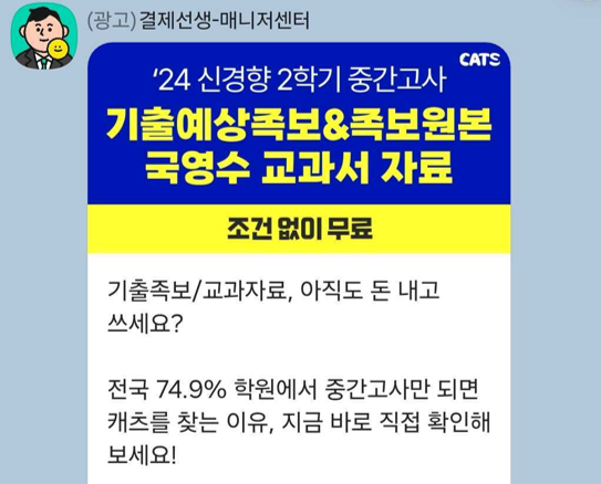 광고 상품 : 카카오톡 채널(결제선생-매니저센터) 메시지