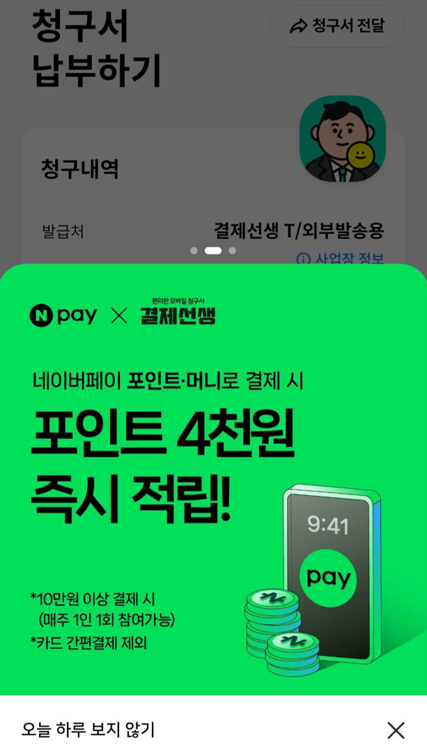 캠페인 내용 : 네이버페이.포인트 결제 시 캐시백 제공 - 청구서 결제 고객 타겟